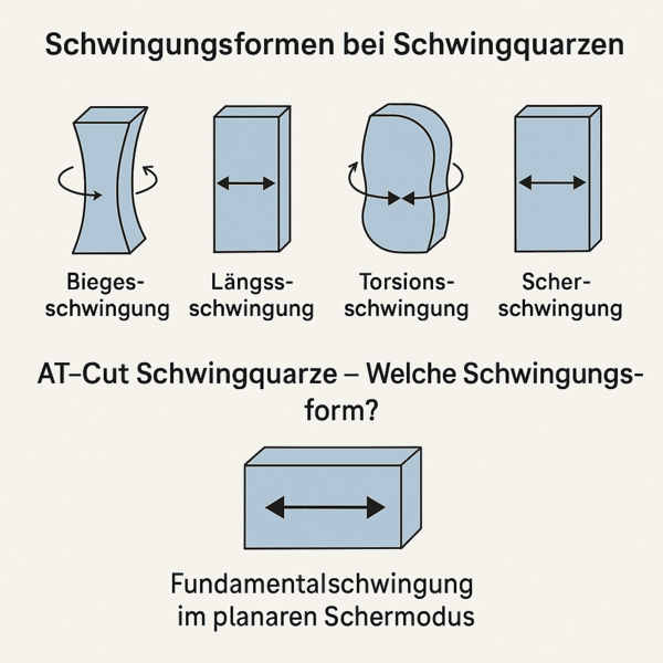 Wibrujące kryształy mogą pracować w różnych trybach drgań mechanicznych. Różnią się one pod względem geometrii, charakterystyki częstotliwościowej, zachowania temperaturowego i przydatności do określonych zastosowań.